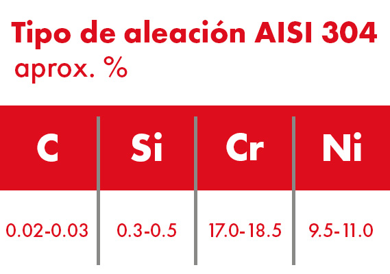 El acero AISI 304 es un acero austenítico que se caracteriza por ser anticorrosivo, resistente a la tracción y torsión.