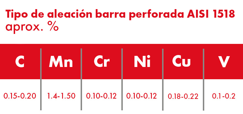 El AISI 1518 es una barra perforada que admite bonificación y durocarbonado. También puede ser tratada en baños de sales.